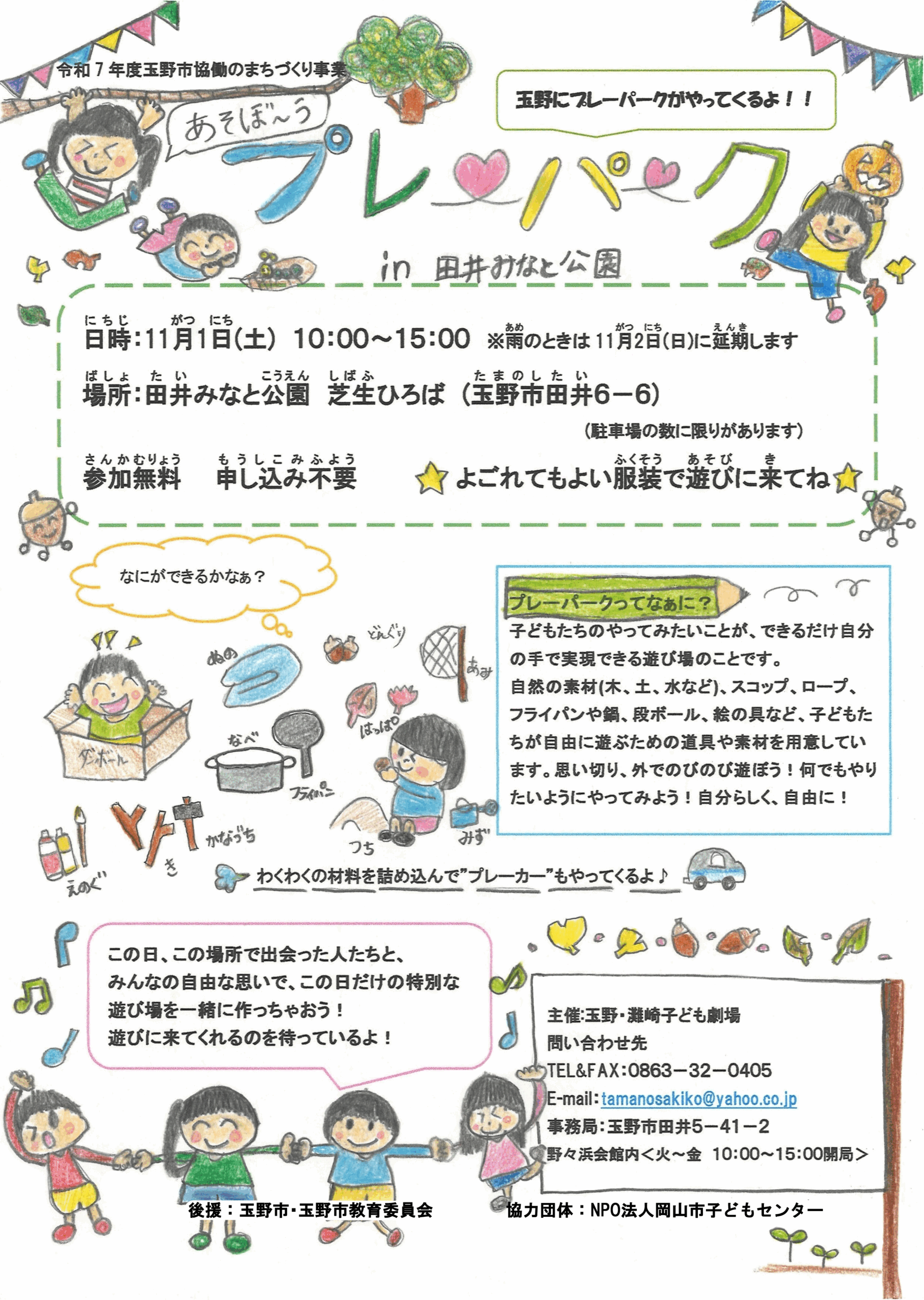 を合言葉に、地域に豊かな文化環境をつくることをめざし、「玉野・灘崎子ども劇場」は1986年2月11日に誕生しました。