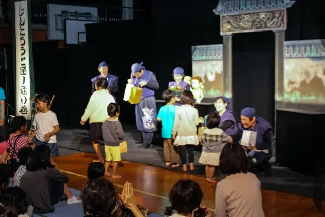 太鼓や和楽器の生演奏に引き込まれ、お話の世界へいざなわれる。