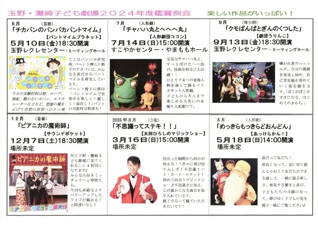 年間を通し、パントマイム・人形劇・舞台劇・音楽・マジックショー等々、バラエティに富んだラインナップでそれぞれのプロがお届けします