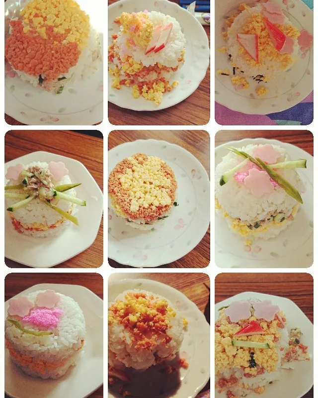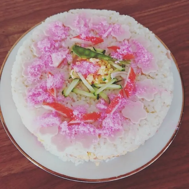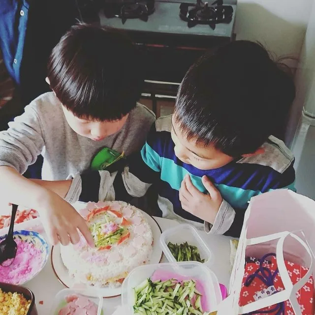 春っぽいお寿司を作りました。みんな自分の食べるお寿司を真剣に作っていました。子どもの作るものにはかないません。並べて見たら本当に可愛い♥️