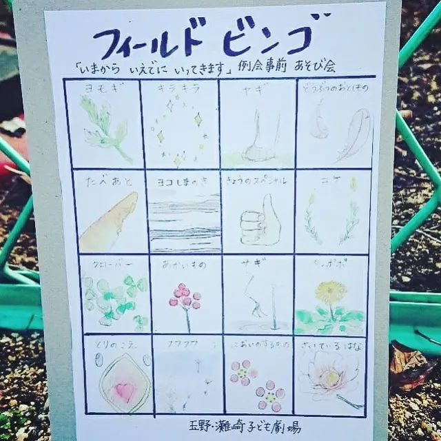 高校生のAちゃんの作ったビンゴカード。とても素敵で手に取った瞬間からわくわく✨外に出ていろんなものをさがすのに、ブラブラと歩きました。