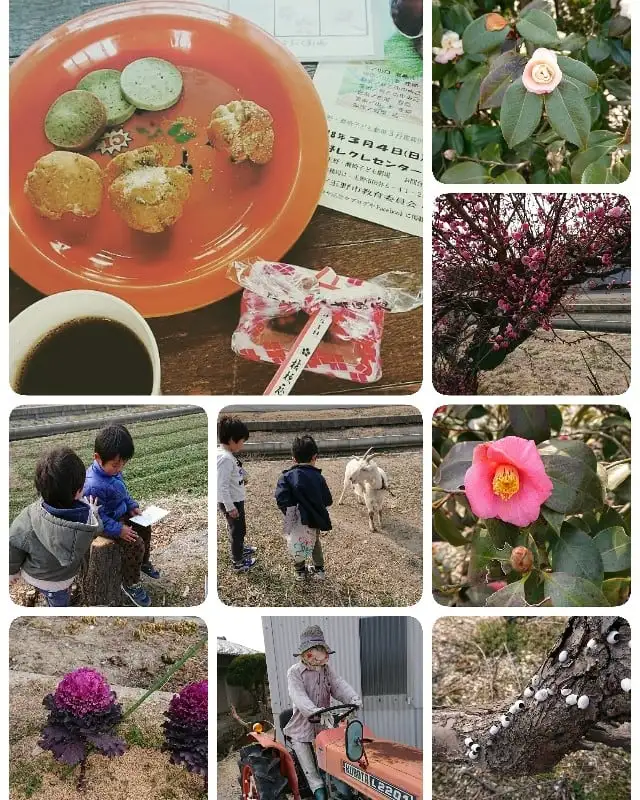 帰ってから、何を見つけたかみんなで話をして、よもぎのクッキー、よもぎ入りドーナツに信玄餅をいただき、大人はたんぽぽコーヒーを飲みました。