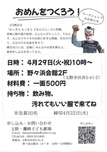 @人形劇に先立って、おめんの絵付けワークショップをするよ!