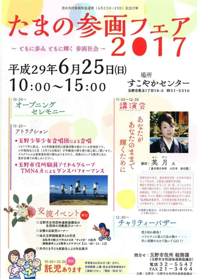 明日は、すこやかセンターである『たまの参画フェアに参加します。