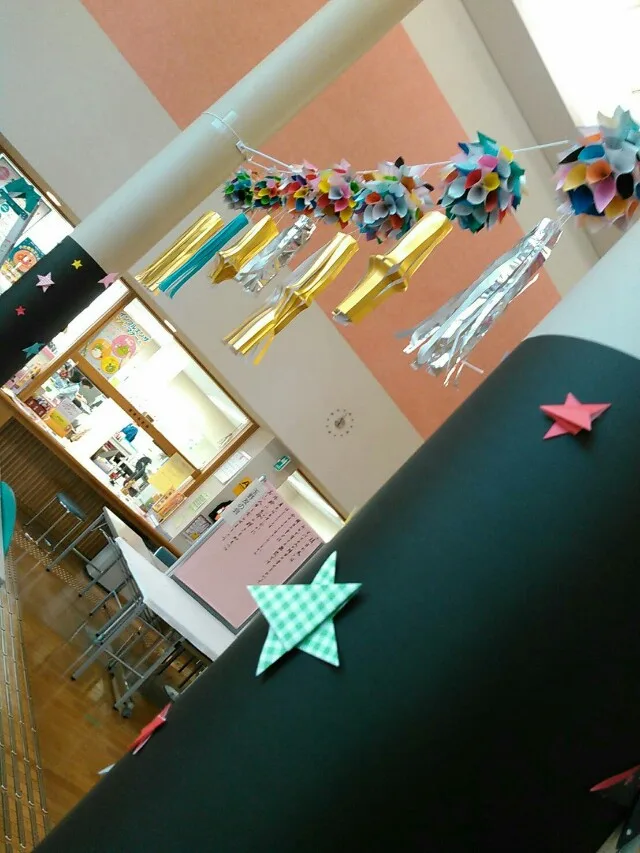 七夕飾りは、映画の準備をしながら、みんなでせっせと(楽しく♪)作りました。見事でしょう~♪ヽ(´▽`)/