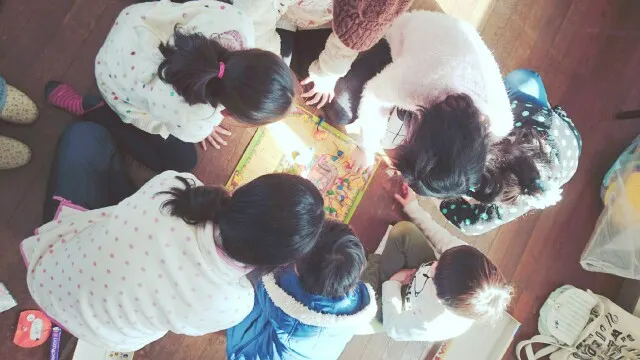 みんなで手を繋いだら、部屋いっぱいになったよ。