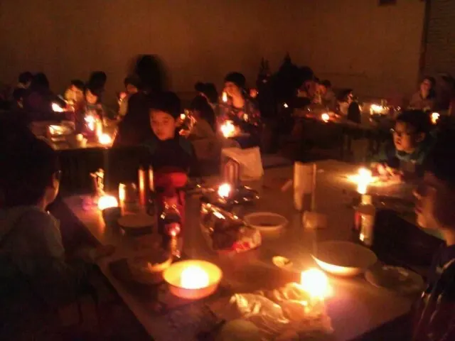 今年の進行は高学年のコドモカイギメンバー。少しずつ行事を子ども中心に進めてもらいたいという気持ちがあり….。 それには、しっかり話し合いが必要なのですが、まだまだ時間が足りませんでした。反省。 CDデッキが動かないなどのトラブルはありましたが、ゆっくり余裕で進んでいく子どもたち。(とは、対照的に焦る大人) でも、でも、足りないところは、いろんな人がアイデアや助けの手を差しのべてくれ、ほっこりとあたたかさを感じる会になりました。片付けもみんなでせっせと….大人の背中を見るからか、意欲的な子どもたちばかりが集まっているのか、できることをテキパキと、あっと言う間に撤収おわり。すばらしい!! キャンドルを見つめたこと、みんなで歌った子ども劇場のうた、たどたどしい恋ダンス(笑)などなど。全部全部、忘れないよ✨
