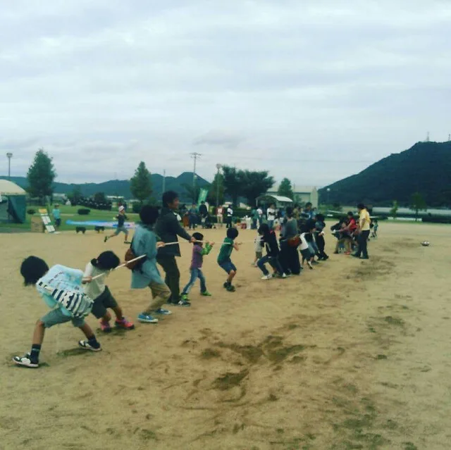 劣勢の方にまわりから手助けが入るから延々、勝負がつかない。優しさいっぱいのつなひきは、結果、勝った方も負けた方も、拍手と笑顔があふれていました。