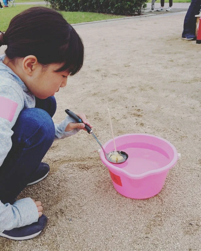 今回、去年、迷いに迷ってやらないと決めた火を使ったあそび(七輪でべっこう飴作り)をやりました。