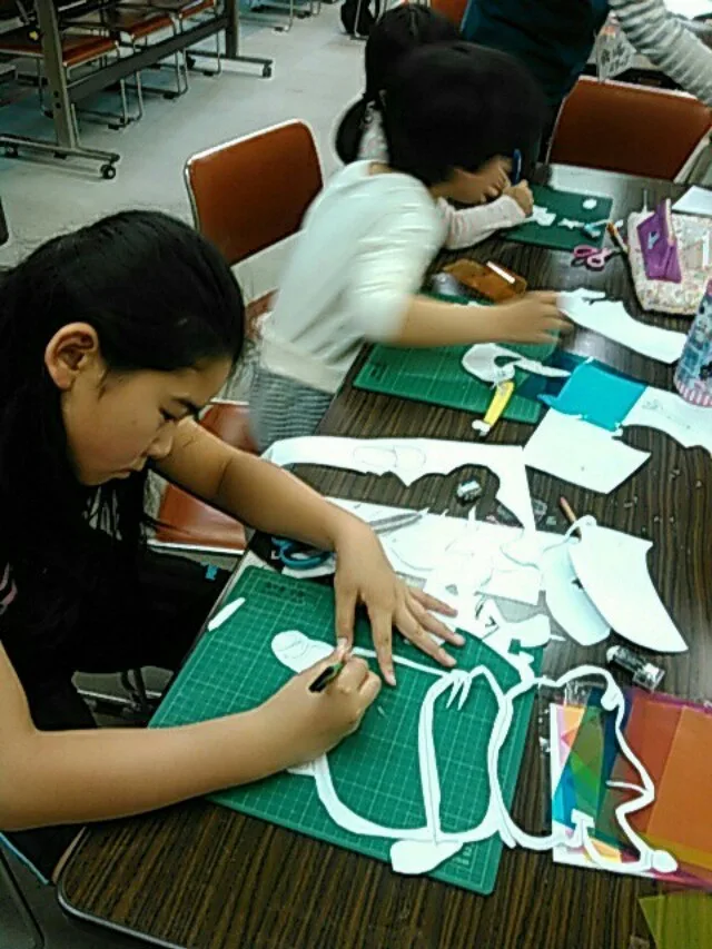 みんなそれぞれに、自分の作りたい影絵人形?(人形だけじゃないよ)を作っていきます。