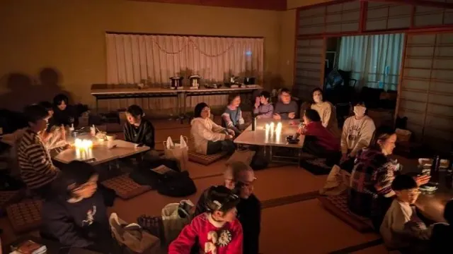 みかんキャンドルでしっとりと恒例「だるま森」さんの詩の朗読からの「きよしこの夜」を全員で歌唱。