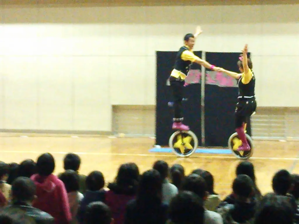 ♥6台の一輪車を使った演目あり。特にすごいのは、縦に5つのタイヤのついた2m50cm位ある五輪車で、これを使った技も世界でwitty lookの二人にしかできません!