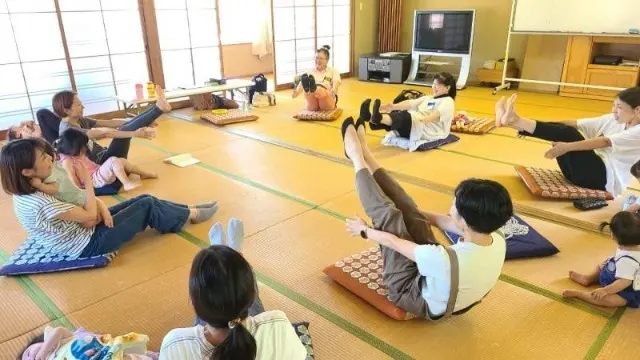 8月に続いて2回目の親子ヨガ。乳幼児を持つお母さんたちに、肩や背中