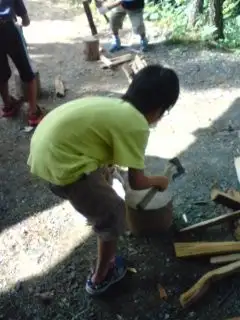 でも、まき割りは男子がお父さんたちに習いながら一生懸命割ってくれました。