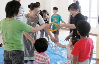 日本各地のわらべうたを先生の素敵な歌声にあわせて、親子のスキンシップができます。