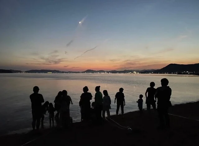 砂浜で夕飯を食べるもよし、