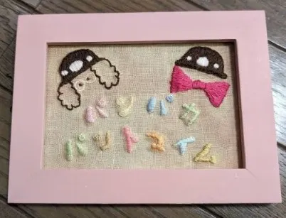 ↑楽屋でお出迎えはUさん手作りの刺繡の額縁