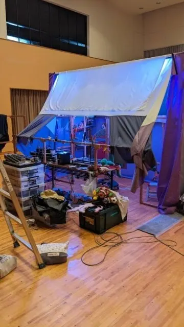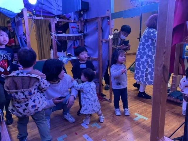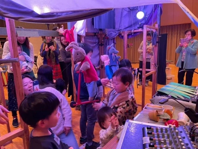 人形劇が終わり、舞台裏をすべて見せてもらいました。スペシャルな経験です✨キラキラ瞳を輝かせて、真剣に、人形や小道具を触るわが子の様子を見て、おとなのひともみんな表情がやわらいでいました。