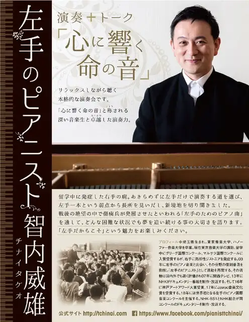 12月鑑賞例会『左手のピアニスト智内威雄』まであと2週間