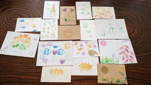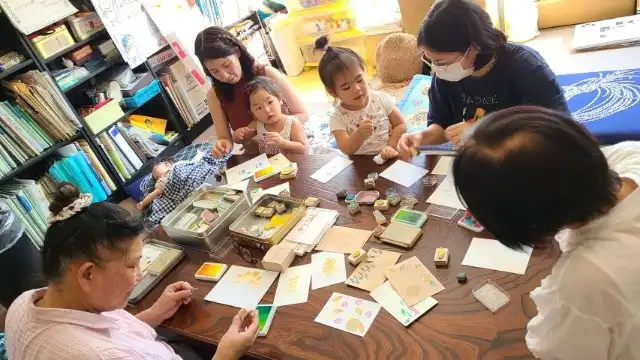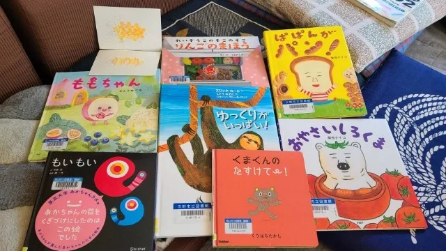 「もいもい」赤ちゃんもちゃんと見ていて、○○ちゃんも文字を読みはじめて興味津々だった。落ち葉🍂はまだなかったけどスタンプ🍂✨️で遊んだよ。