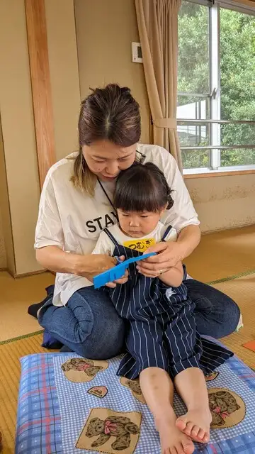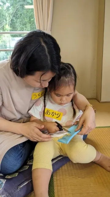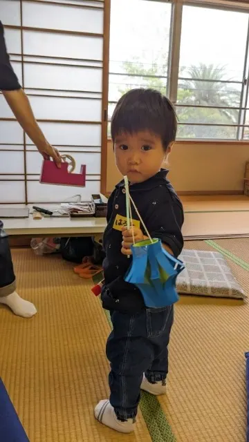 3歳前の幼児たちも器用にハサミを使ってめいめいの提灯を作ったよ!