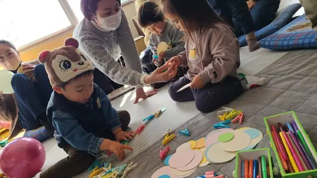 5組の親子が参加してくれました。オカリナの演奏に合わせて、♪どこかで春が♪春が来た♪七つの子♪ひなまつり♪歌いながら毎年恒例好評の”お雛さま飾り”もしたよ