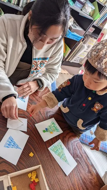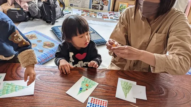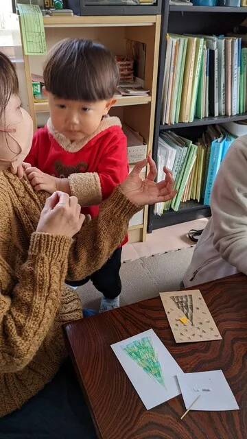 読み聞かせの後は、スタンプツリーに思い思いの飾り付けをして素敵なクリスマスツリーができあがりました