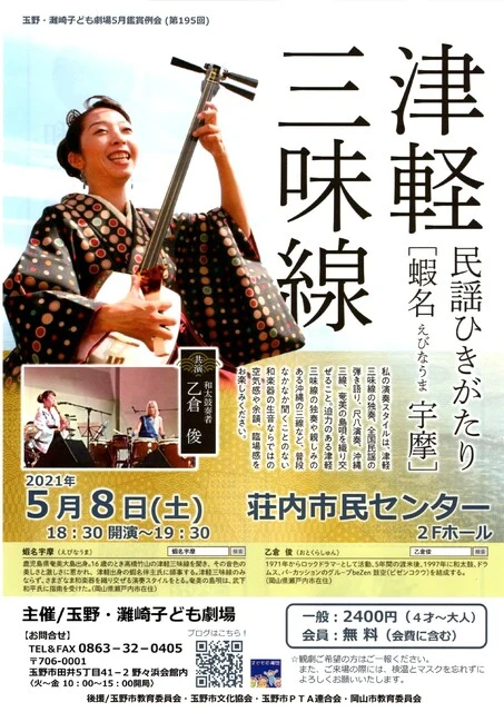 2020年間案内チラシには、5月例会が『シャボン玉コンサートのはじまり』になっていましたが、このコロナ禍でイタリアはロックダウンに。演者が日本に来れなくなってしまいました。とても残念ですが、瀬戸内市で活躍する素敵な津軽三味線ファミリーと和太鼓に出会い、玉野で開催することができるようになりました!