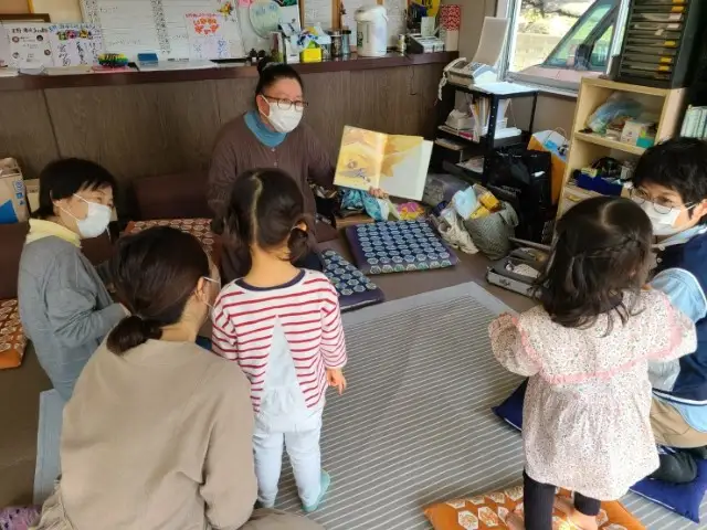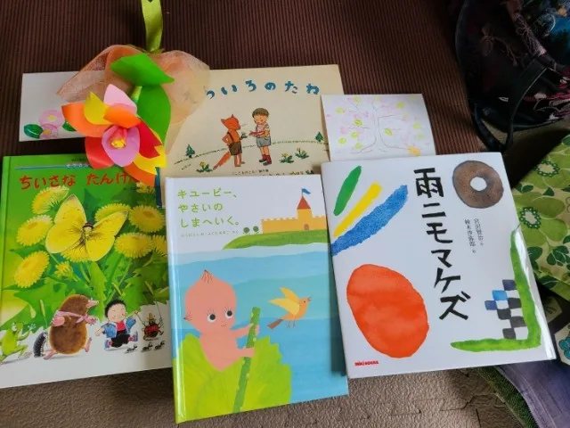 読み聞かせの名手お二人が4冊の絵本を紹介してくれました!中身は飛び出す絵本もあり~の、歌がとびだすのもあり、子どもやお母さんたちも一緒にリズムに乗って楽しみました♪