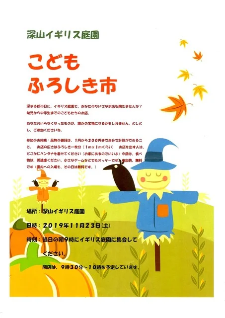 今週末11月23日(土)にイギリス庭園で何年かぶりに「子ども風呂敷市」が行われる事になりました!みなさん 寄ってらっしゃい☆ 見てらっしゃい☆