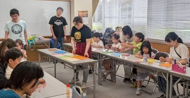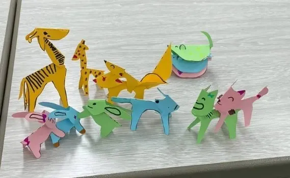 この日の午前中10:30~11:30に2F第1会議室にて「紙切りワークショップ」を開催。劇団の方の優しい指導の下、可愛い動物たちが出来上がり、みんなのを集めると、素晴らしい動物園の完成です☆