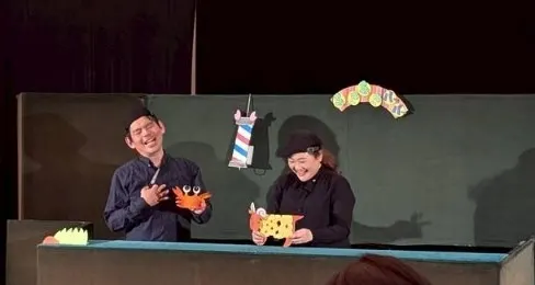 あいさつからのバトンタッチで、人形劇団あっけらかん♪のお二人が何やら✂を取り出して『ちょきちょきバーバー』が楽しくはじまりました💛ここから観客みんなの心は持っていかれました☆