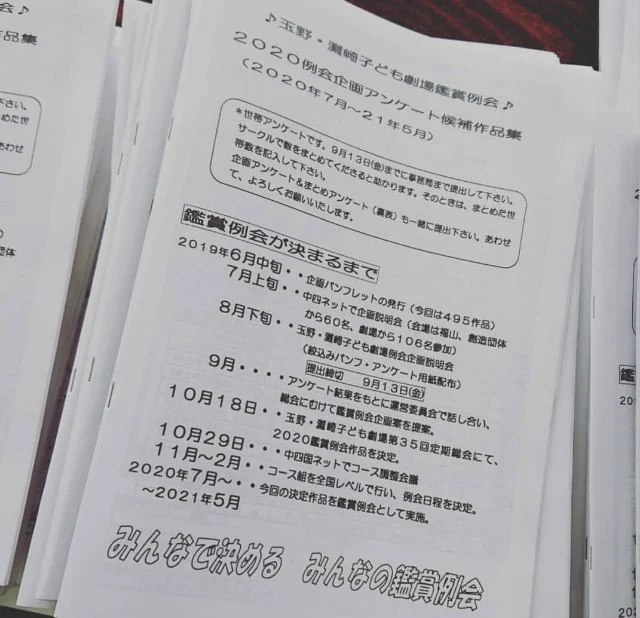 私たちの玉野灘崎子ども劇場の2020年例会企画アンケート。提出日は9月13日でした。