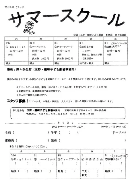 *申込は 玉野・灘崎子ども劇場事務局まで